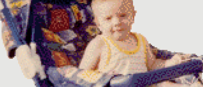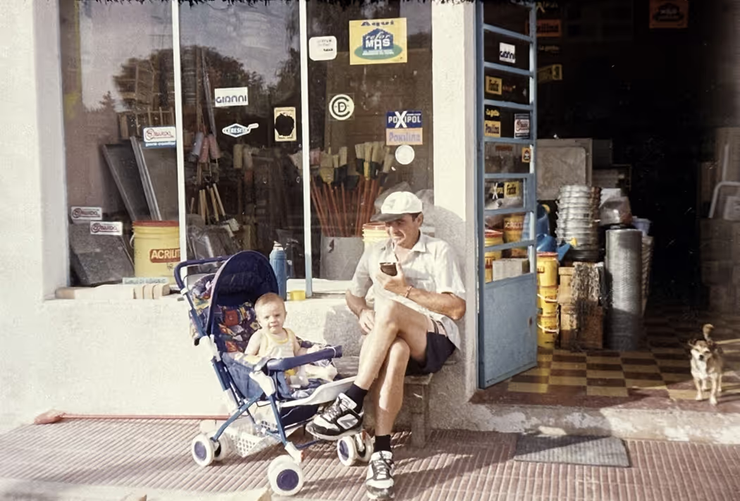 Anyway, that’s my idea. Now that I’m emerging a bit from the swamp of pain and shock, I want to dedicate time to reconstructing our memory. My first vision of this was to create a collage of various cross-stitch pieces of objects I come across daily that remind me of my father, and also to embroider a photo of him and me from my childhood that I really love. It took me a while to be able to look at that photo. When he passed, I wanted to go through my childhood photo albums, but it took me months to gather the strength to do it. When I finally did, it was what a moment—painful, but also full of beautiful memories. And that photo is just… beautiful.
