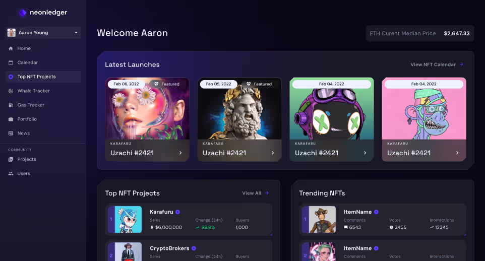 A tracking platform for all you could need to know about your NFT's trading.